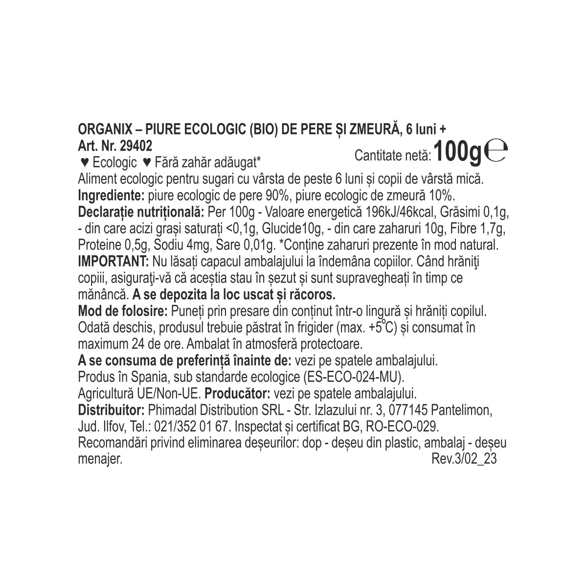 ORGANIX PIURE ECOLOGIC (BIO) DE PERE SI ZMEURA, 100G, 6+