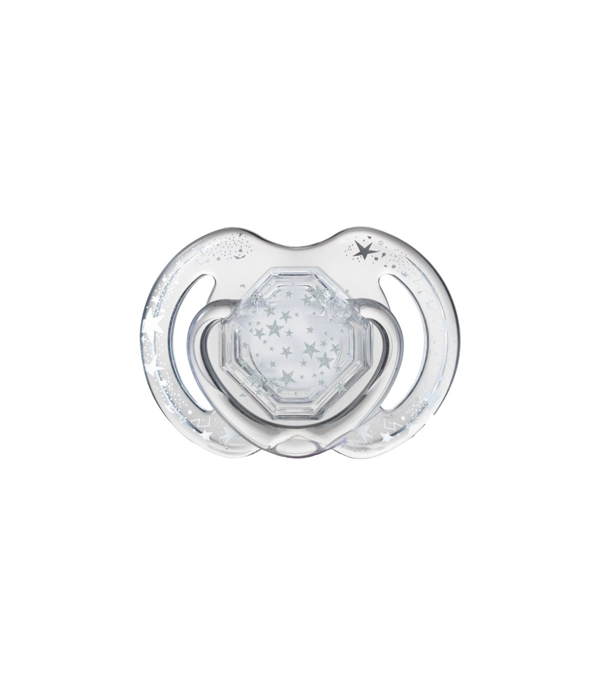 Suzeta inclusa (0-6 luni) are tetina ovala din silicon iar scutul este prevazut cu orificii laterale pentru un flux maxim de aer intre pielea sugarului si aceasta, in scopul de a se evita aparitia iritatiilor. (Atentie! Permite sterilizarea doar a suzetelor din silicon, nu si a celor din latex)