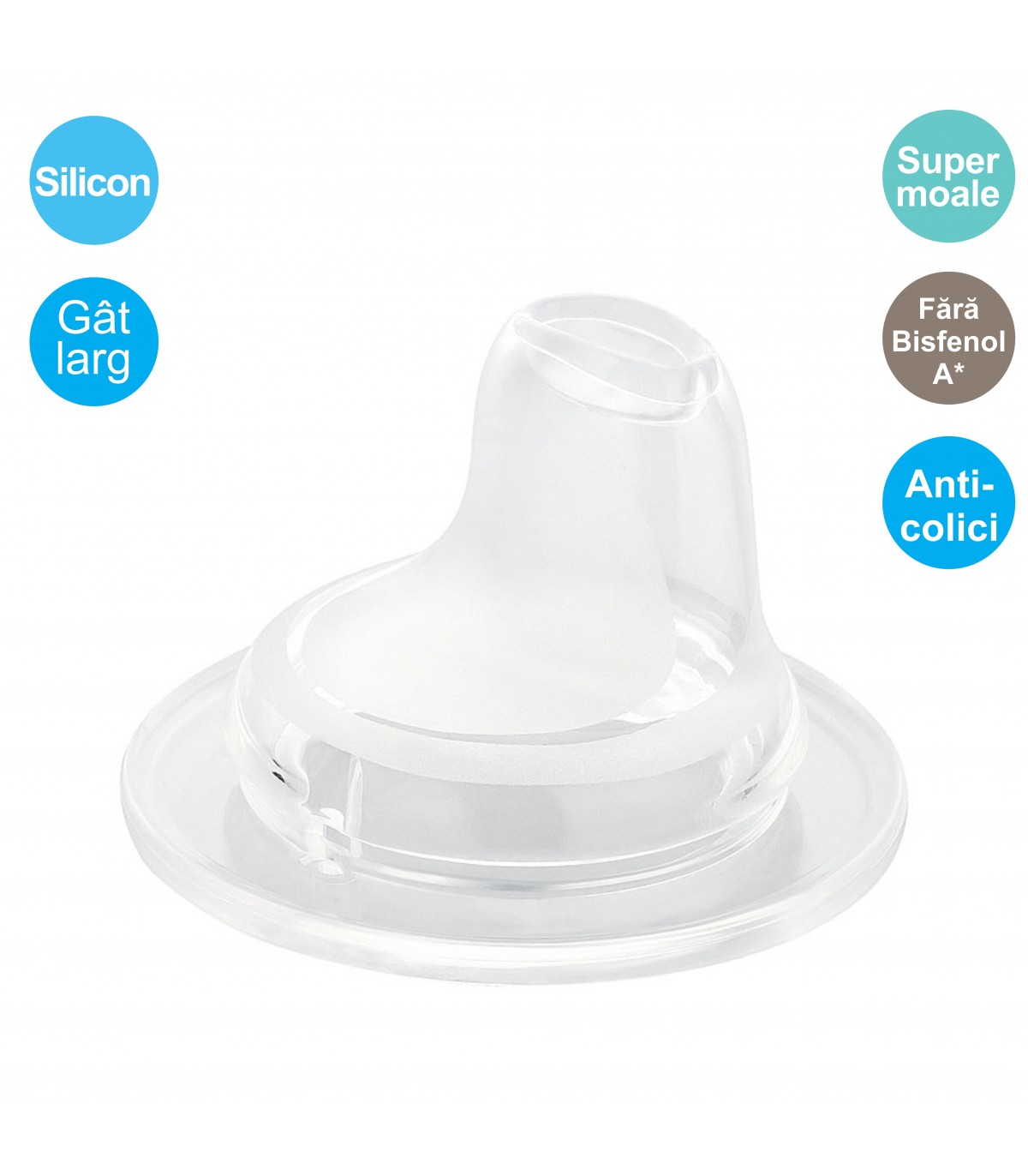 Tetina ce nu curge, faciliteaza tranzitia de la biberon la cana