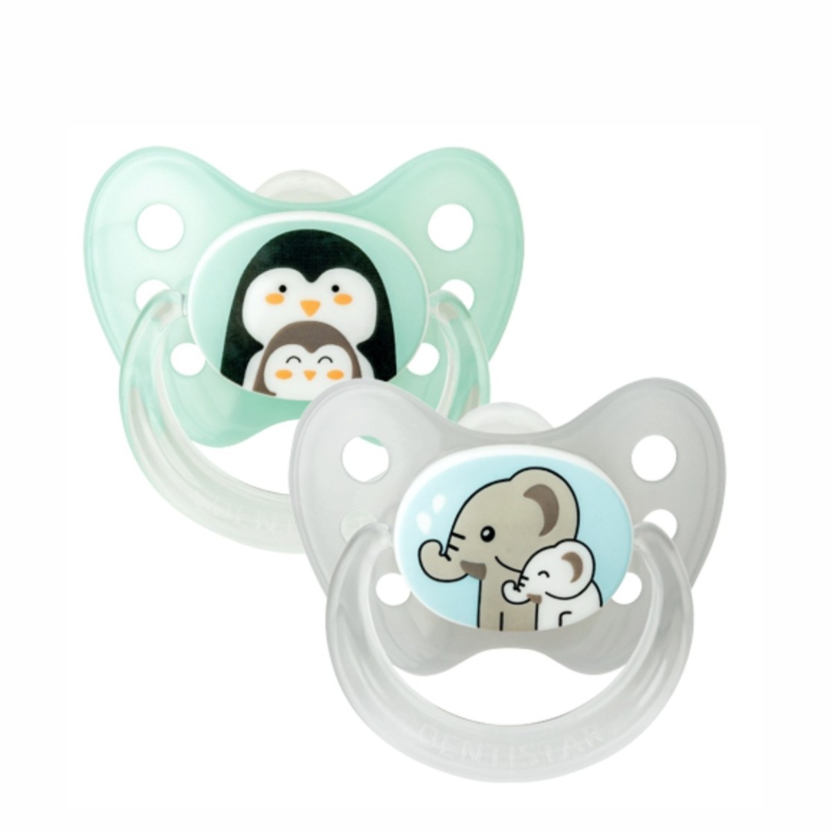 Dentistar – Set 2 suzete cu inel + cutie sterilizare, 0-6 luni