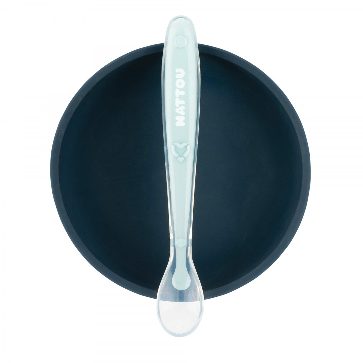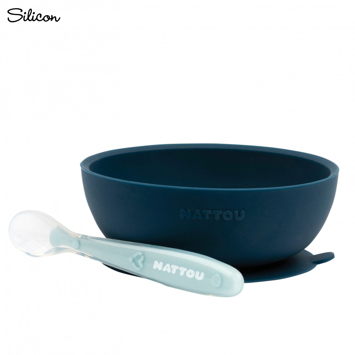 Nattou – Set din silicon castronel cu ventuza si lingurita