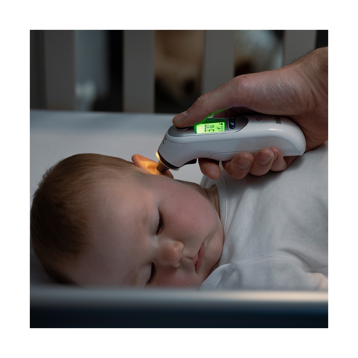 Potrivit pentru nou-nascuti. S-a dovedit clinic ca ThermoScan® 7+ este la fel de exact precum masuratorile rectale la nou-nascuti.4 ThermoScan® 7+ identifica schimbarile de temperatura mai rapid5 decat termometrele rectale. Senzorul cu unghi larg de citire are precizie profesionala, inclusiv in canalul auricular mic al nou-nascutului.