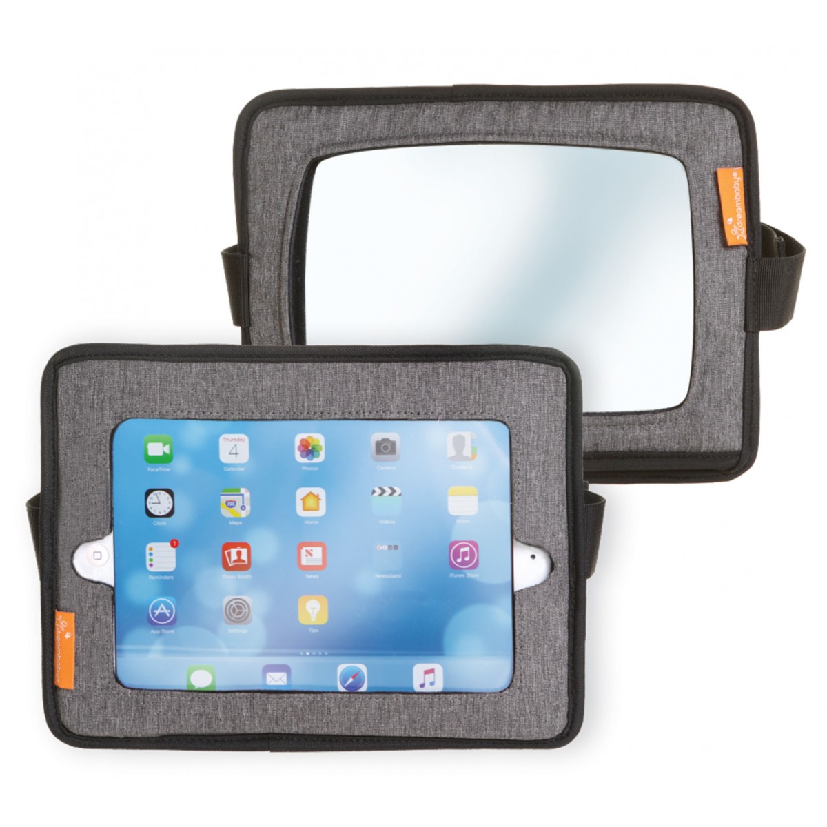 Aceasta combinatie intre oglinda pentru bancheta din spate si suport pentru tableta va ajuta sa va urmariti copilul in masina, permitand vizualizarea acestuia atunci cand sta in scaunelul auto pozitionat cu spatele catre directia de mers. Oglinda este foarte mare si ofera un unghi larg de vedere. Cu materialul rezistent la spargere si varietatea de optiuni de prindere, puteti sa fiti siguri ca aceasta oglinda se va potrivi nevoilor dumneavoastra. Pentru calatoriile mai lungi sau atunci cand copilul este pozitionat in scaunel cu fata catre directia de mers, poate fi instalat pe partea cu suportul pentru tableta.
