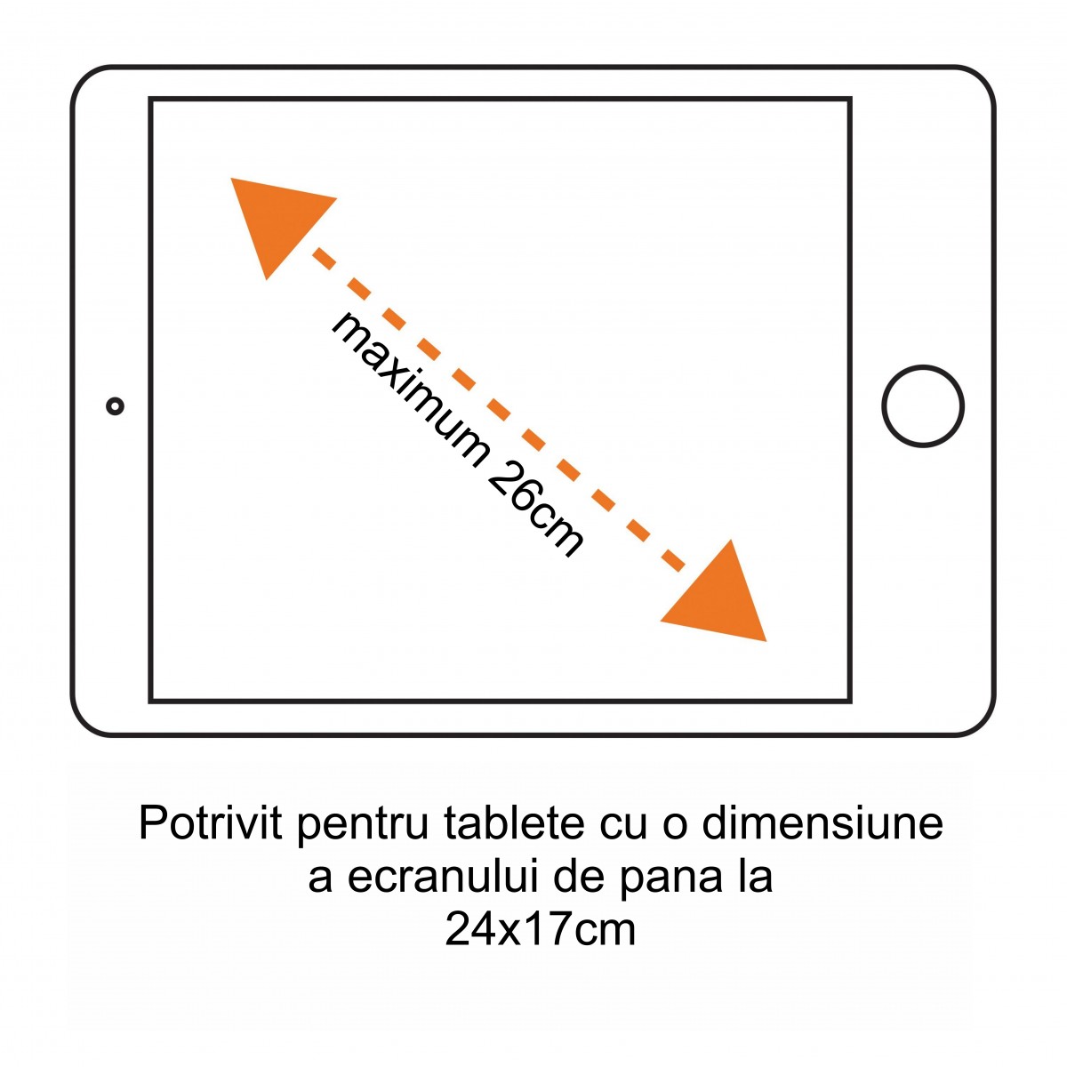 • Potrivit pentru tablete (iPad, Android - neincluse) cu o dimensiune a ecranului de pana la 24x17cm