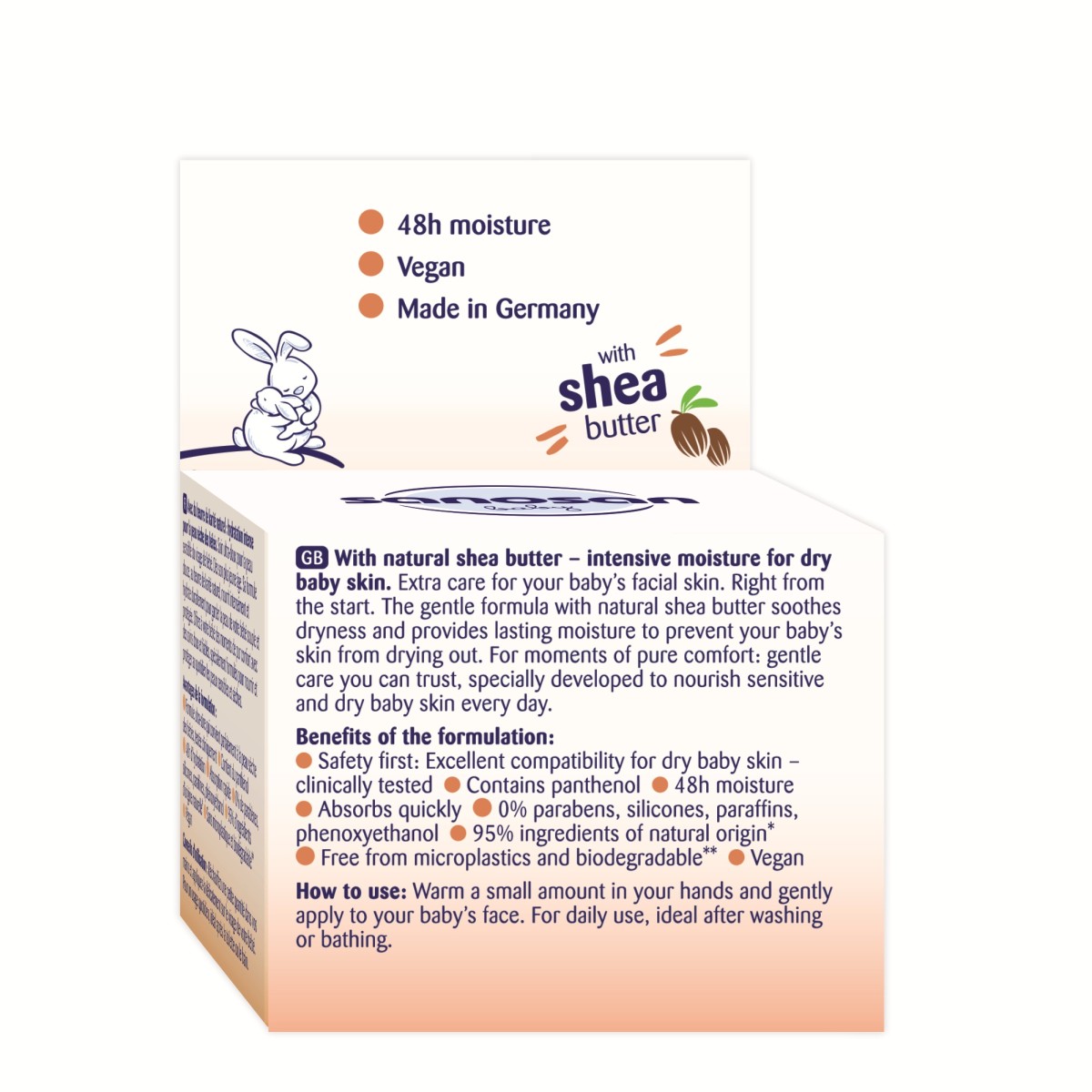 Cu unt natural de shea – îngrijire și hidratare intensă pentru pielea uscată a feței bebelușului, încă de la naștere.