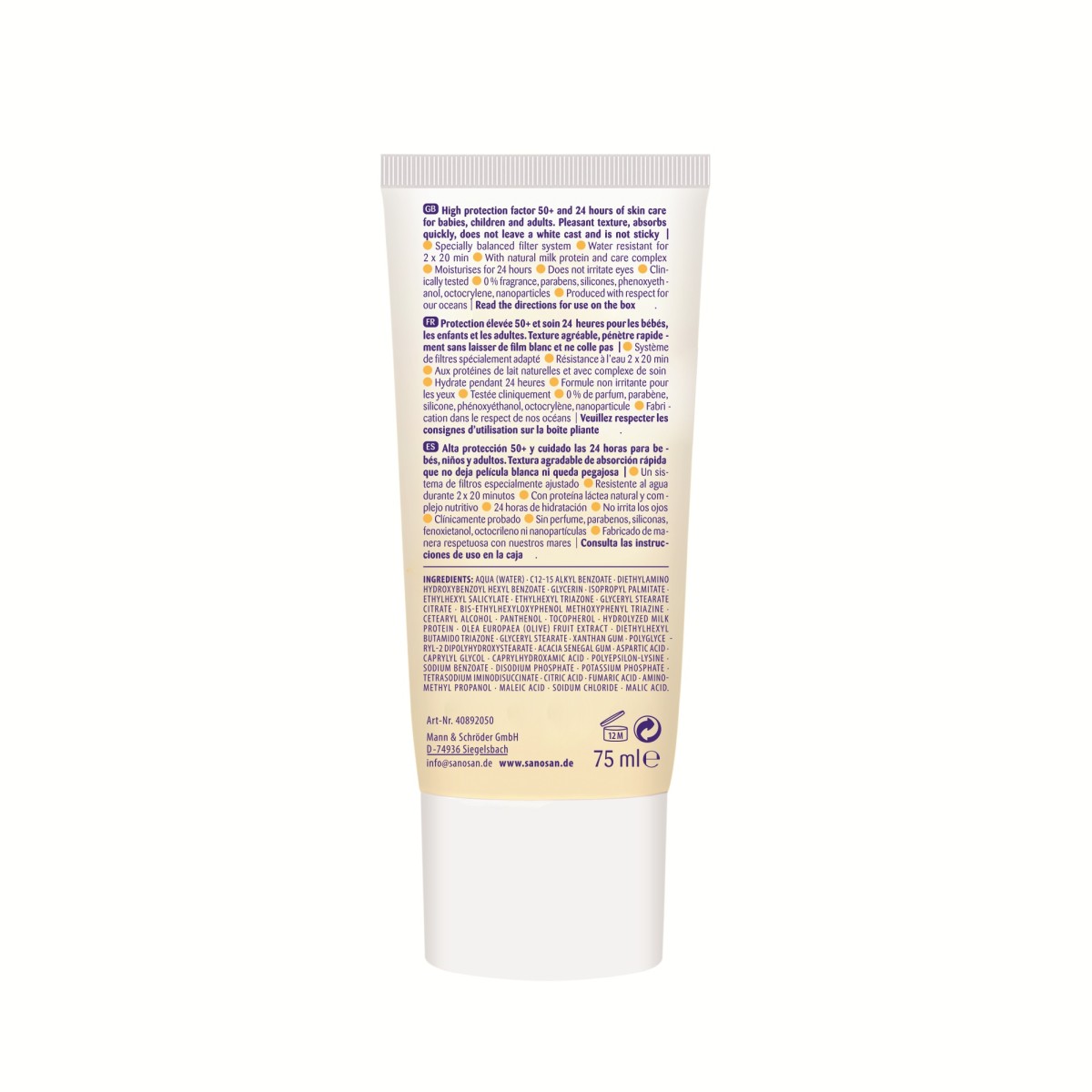 • 0% parfum, parabeni, silicon, fenoxietanol, octocrilen, nanoparticule.