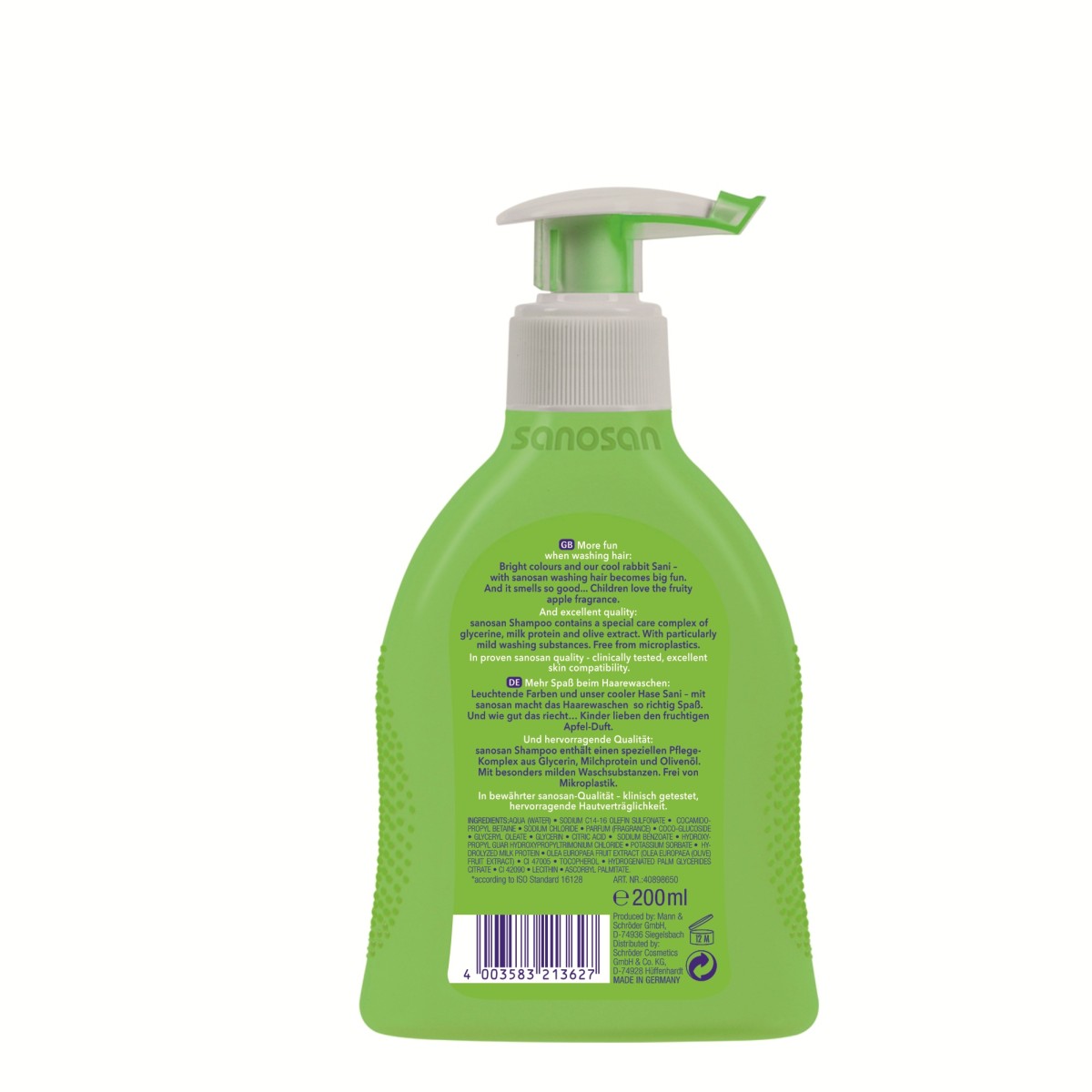 Datorită culorilor vesele și alături de Sani, iepurașul nostru simpatic, Sanosan transformă spălatul părului într-o mare distracție. Și miroase așa de bine... Copiii iubesc mirosul fructat de măr.