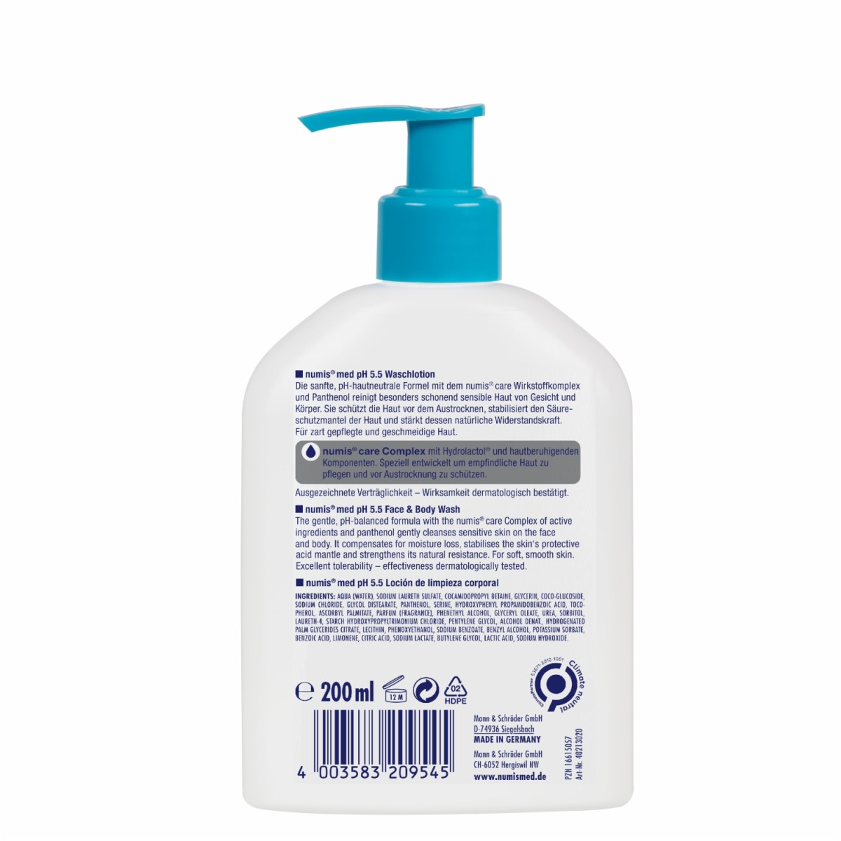 Datorită formulei blândă cu pH echilibrat, bazată pe ingredientele active din complexul numis® care și pantenol, această loțiune curăță cu blândețe pielea sensibilă a feței și a corpului. Protejează pielea împotriva deshidratării, stabilizează mantaua acidă a pielii cu rol de protecție și îi sporește rezistența naturală, lăsând pielea catifelată și fină.