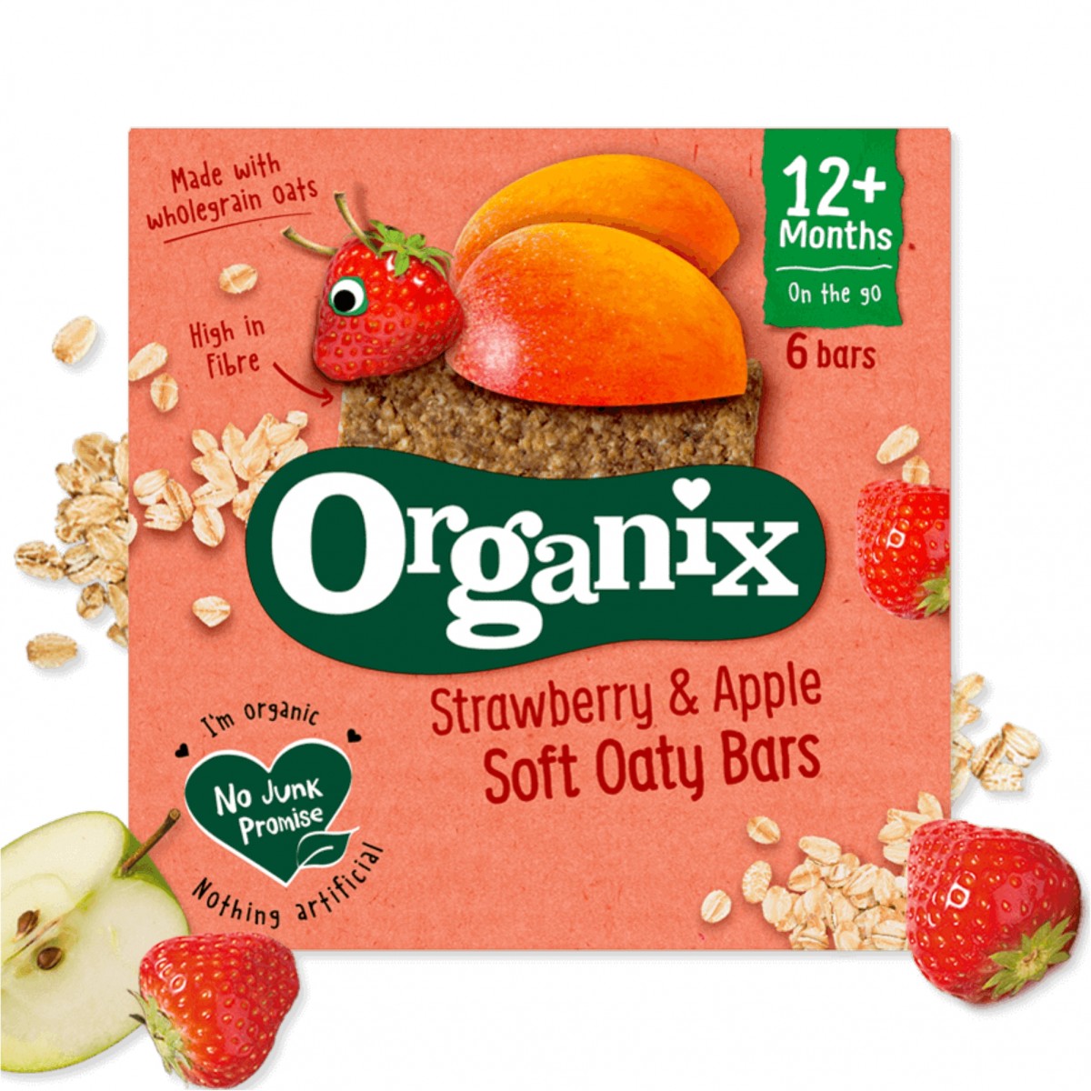 Organix - Batoane ecologice (BIO) din ovaz integral cu capsuni si mere, 12luni+