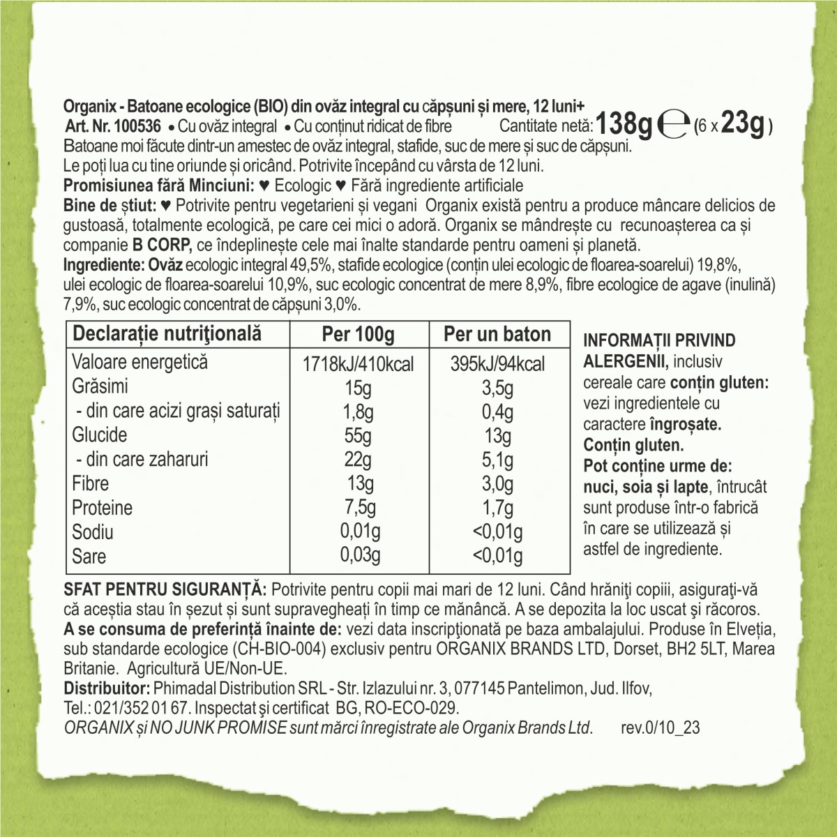 ORGANIX - BATOANE ECOLOGICE (BIO) DIN OVAZ INTEGRAL CU CAPSUNI SI MERE 6X23G, 12luni+