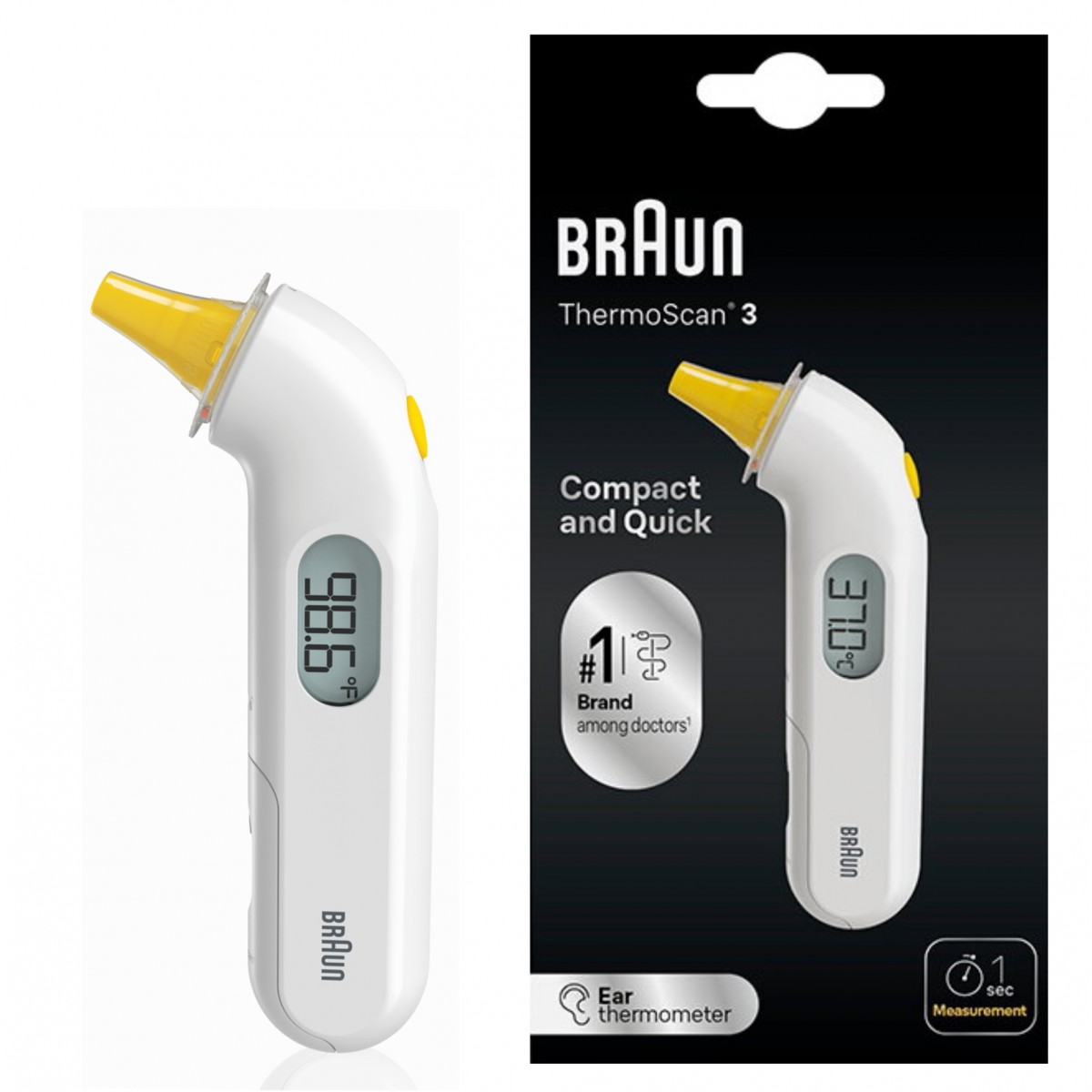 BRAUN ThermoScan® 3 - Termometru auricular compact foarte rapid (cu măsurarea temperaturii într-o secundă)