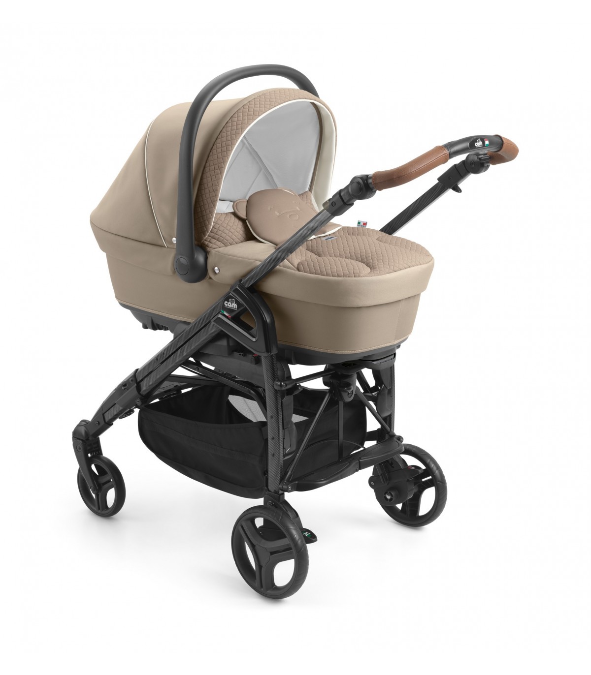-cadru de aluminiu cu un nou sistem de pliere cu ajutorul unei singure maini, scaun reversibil (scaunul poate fi orientat cu spatele (0-12 luni) sau cu fata (12-36 luni) spre directia de mers) cu sistem practic de prindere si desfacere de pe cadru