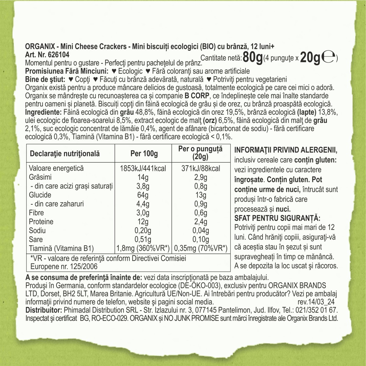ORGANIX - BISCUITI ECOLOGICI MINI CHEESE CRACKERS (BIO) CU BRANZA, 4X20G, 12luni+