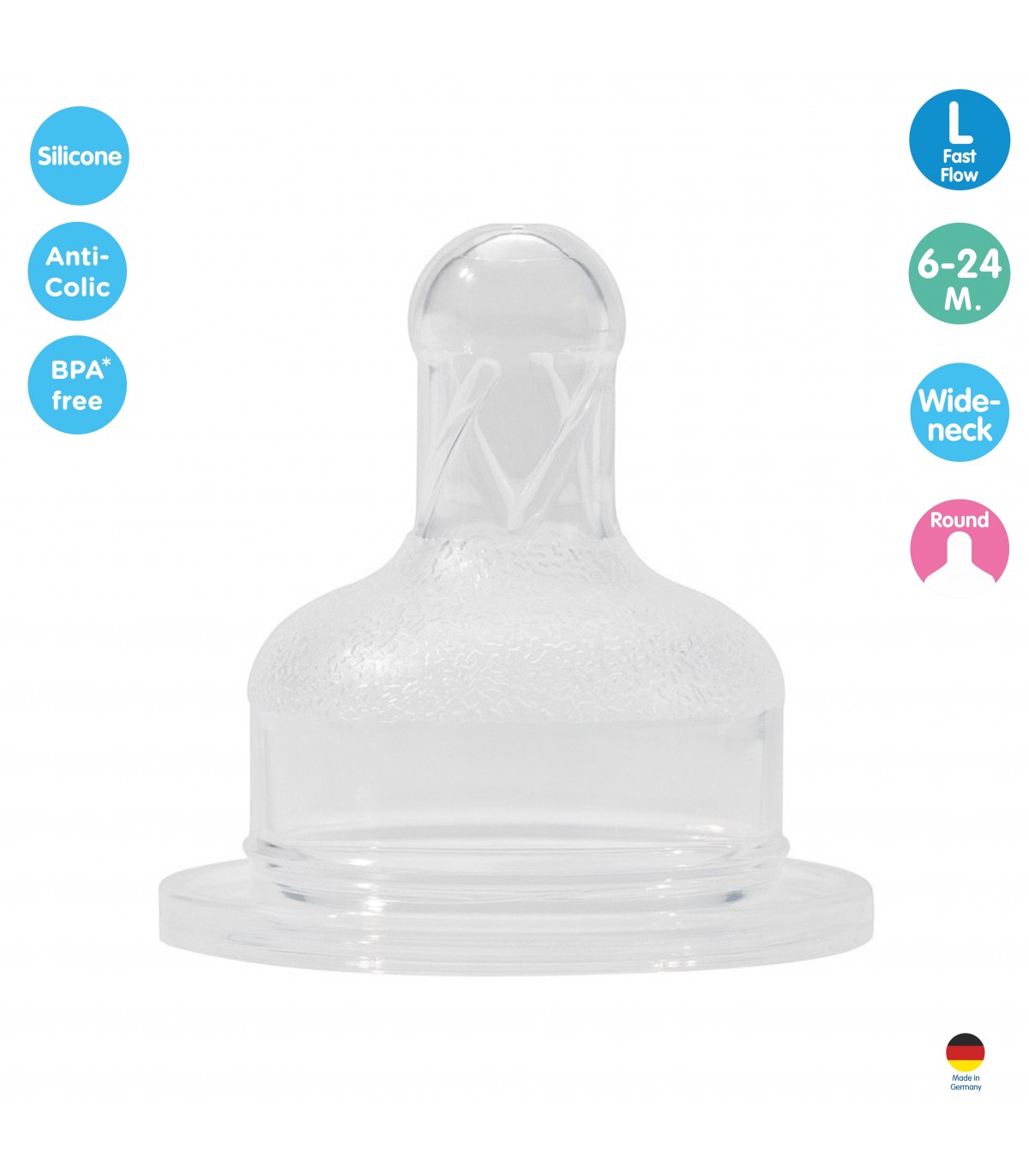 2 tetine moi din silicon potrivite pentru biberoanele cu gat larg