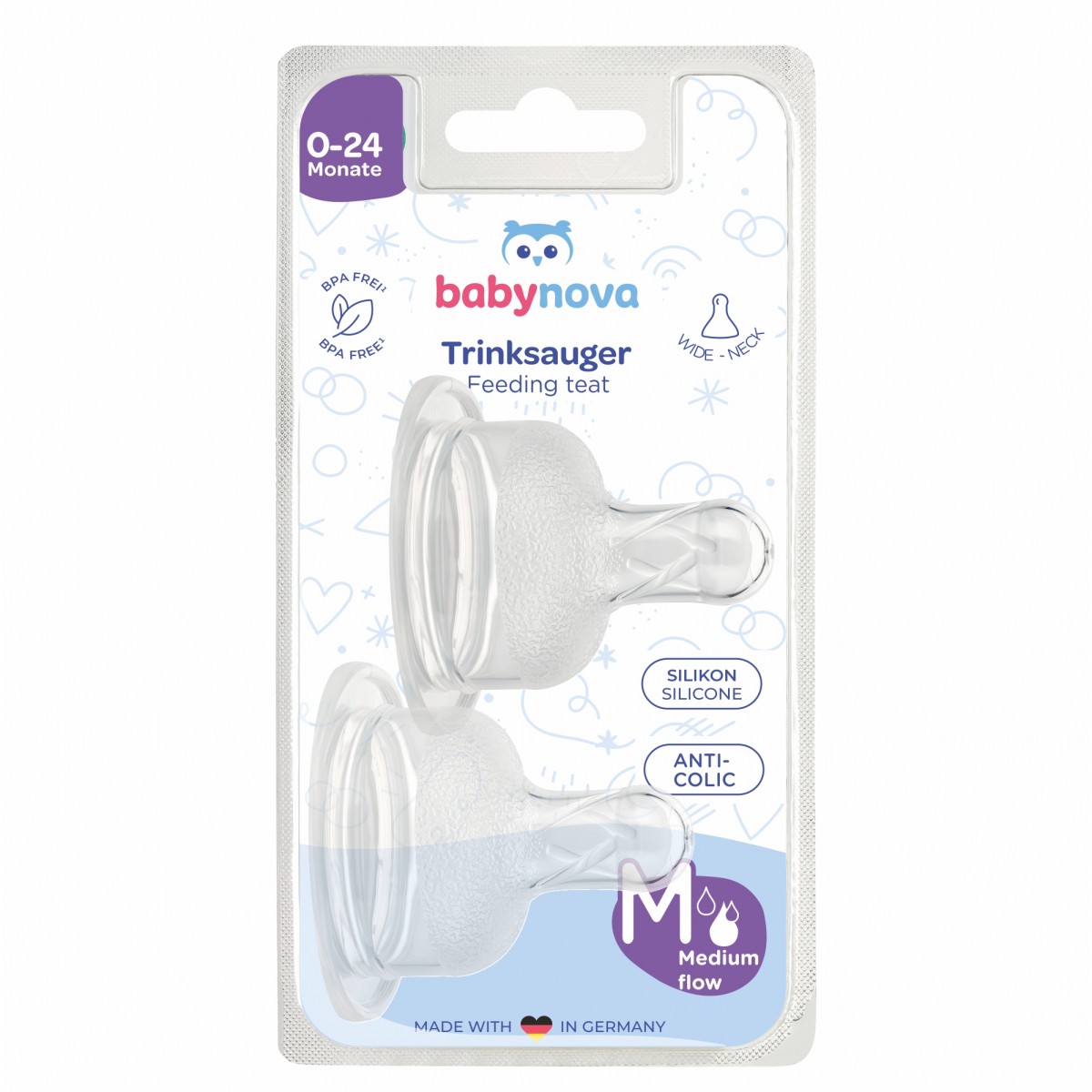 Baby Nova - Tetine rotunde cu gat larg, anti-colici, Marimea M (0-24 luni)