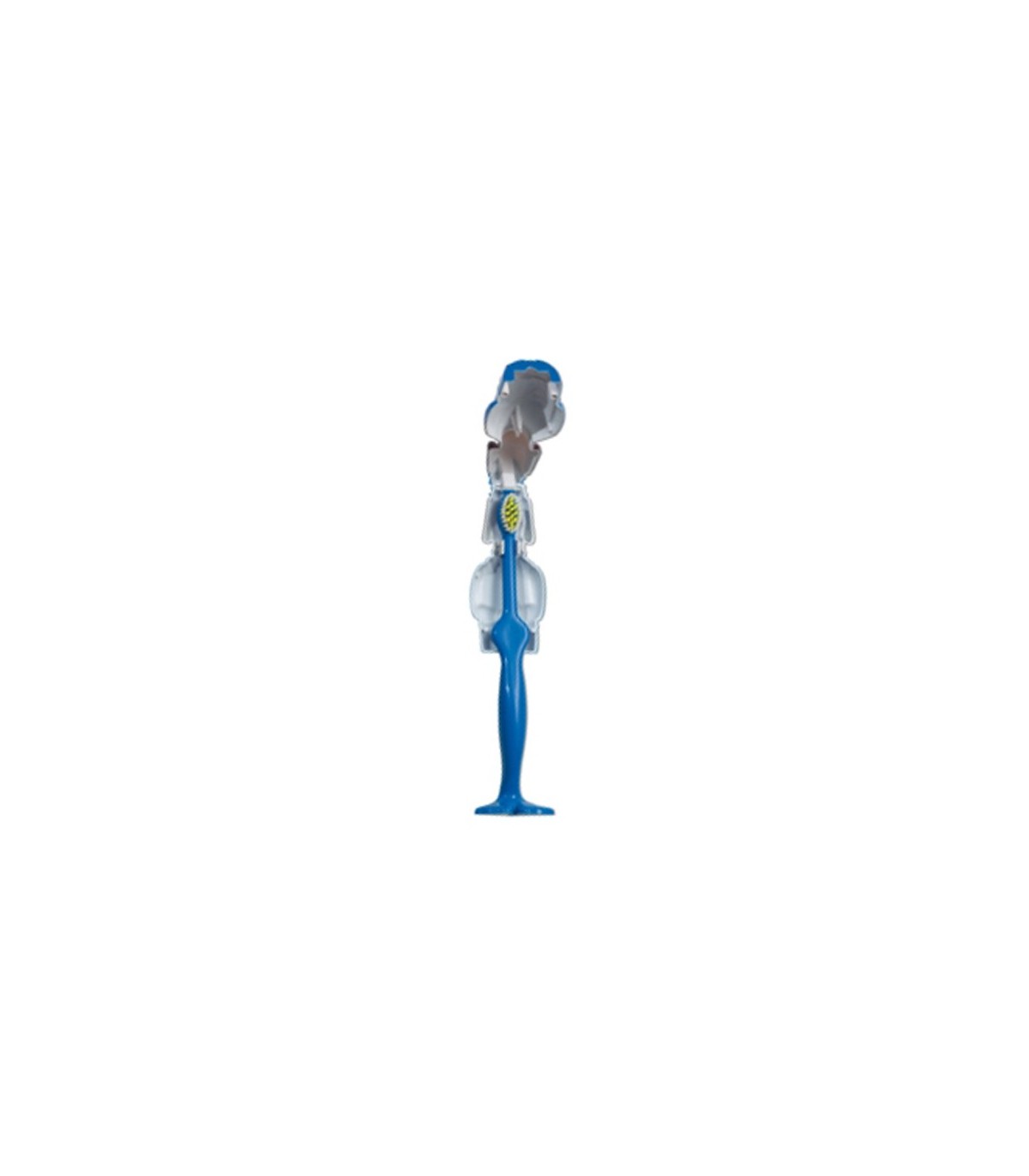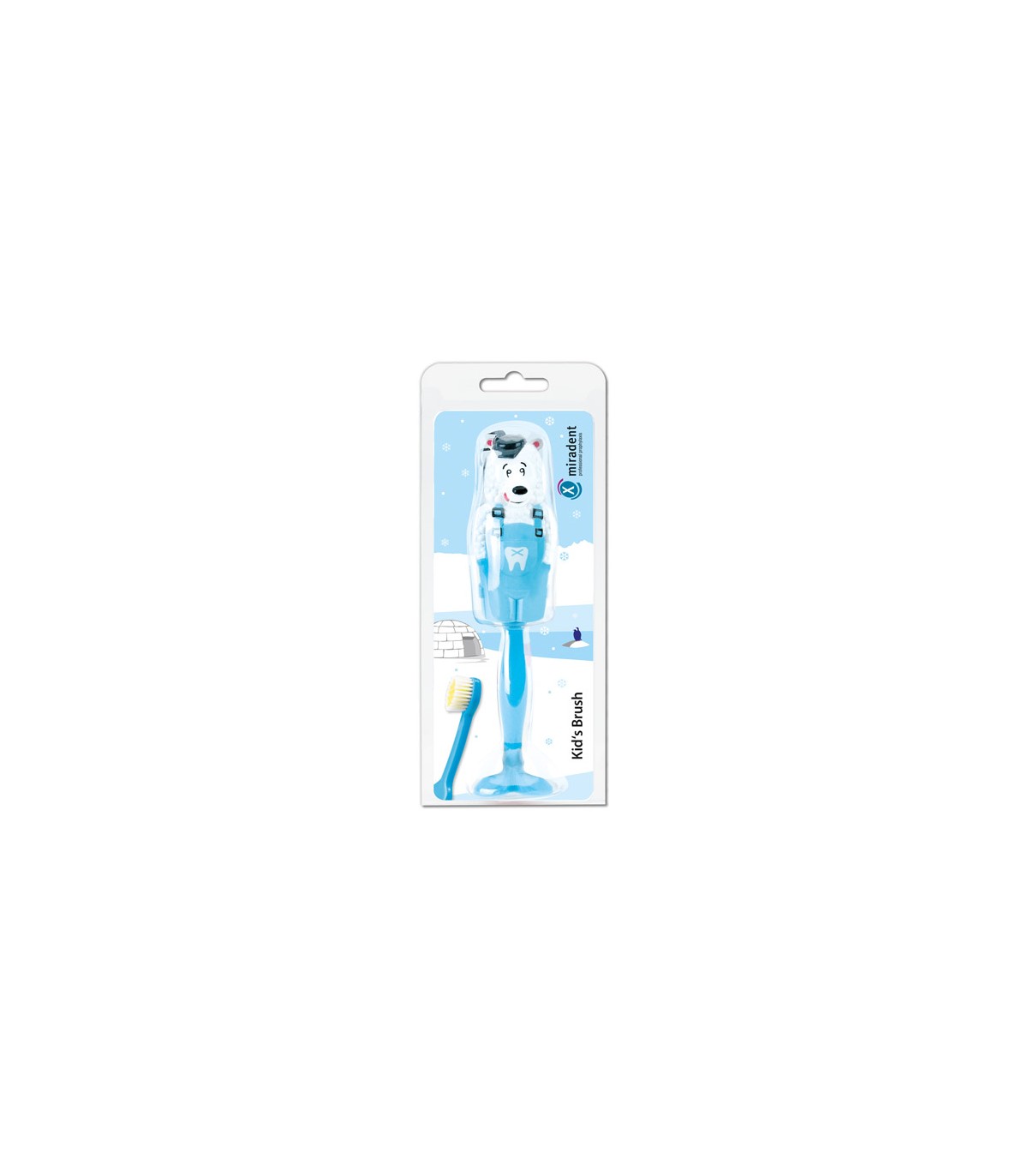 Periuta are picior pentru a sta la verticala si capac in forma de urs pentru a atrage atentia copilului.