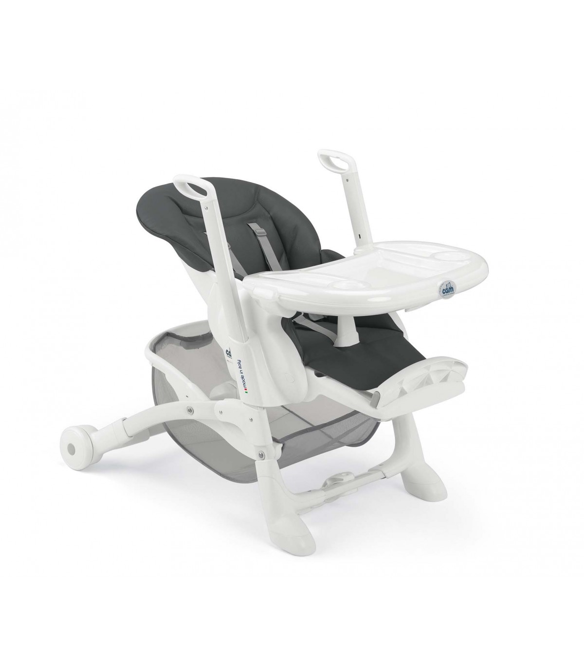 Cam Instante este un scaun multifunctional ce poate fi folosit si inainte de inceperea diversificarii, ca scaun pentru joaca. In functie de necesitati, poate fi configurat in multimple feluri, avand o mare varietate de reglaje posibile.