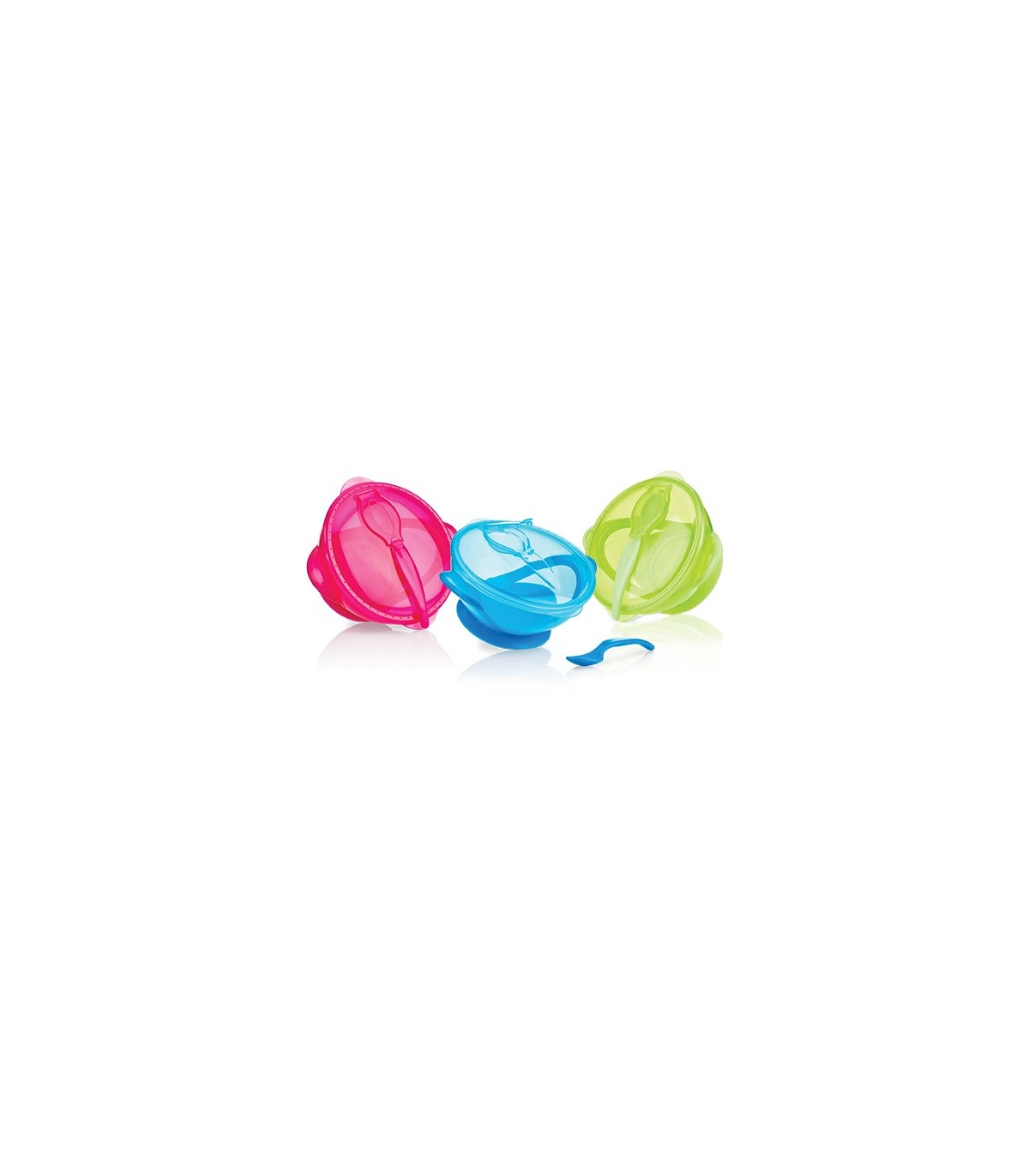 Nuby - bol cu ventuza si capac + lingurita, 6+