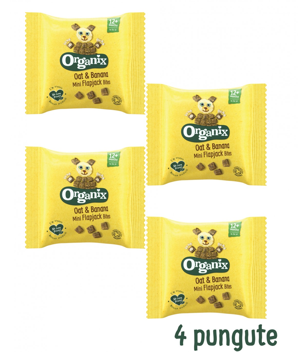 Le poți lua cu tine oriunde și oricând Cantitate netă: 80g℮ (4 punguțe x 20g)