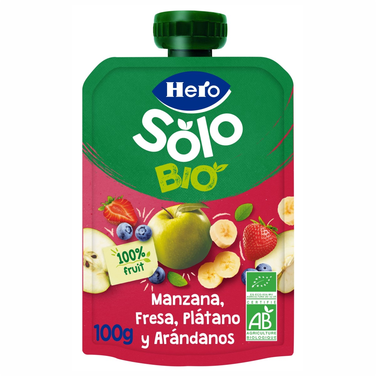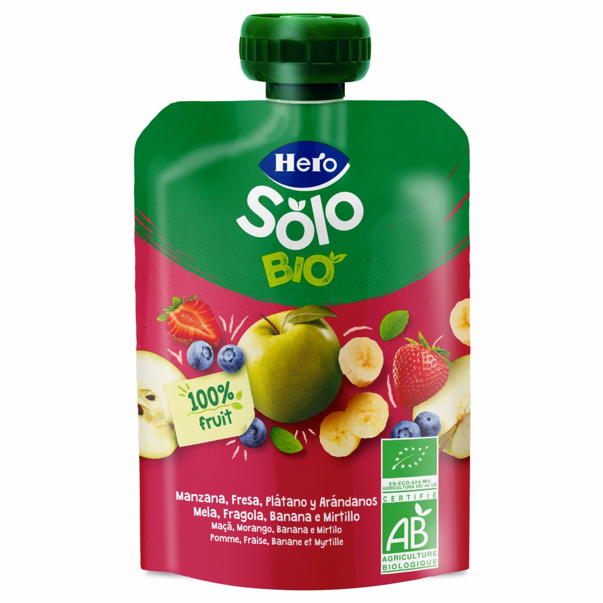 Hero Solo - Gustare ecologica (BIO) de mar, capsuni, banana si afine, 4+