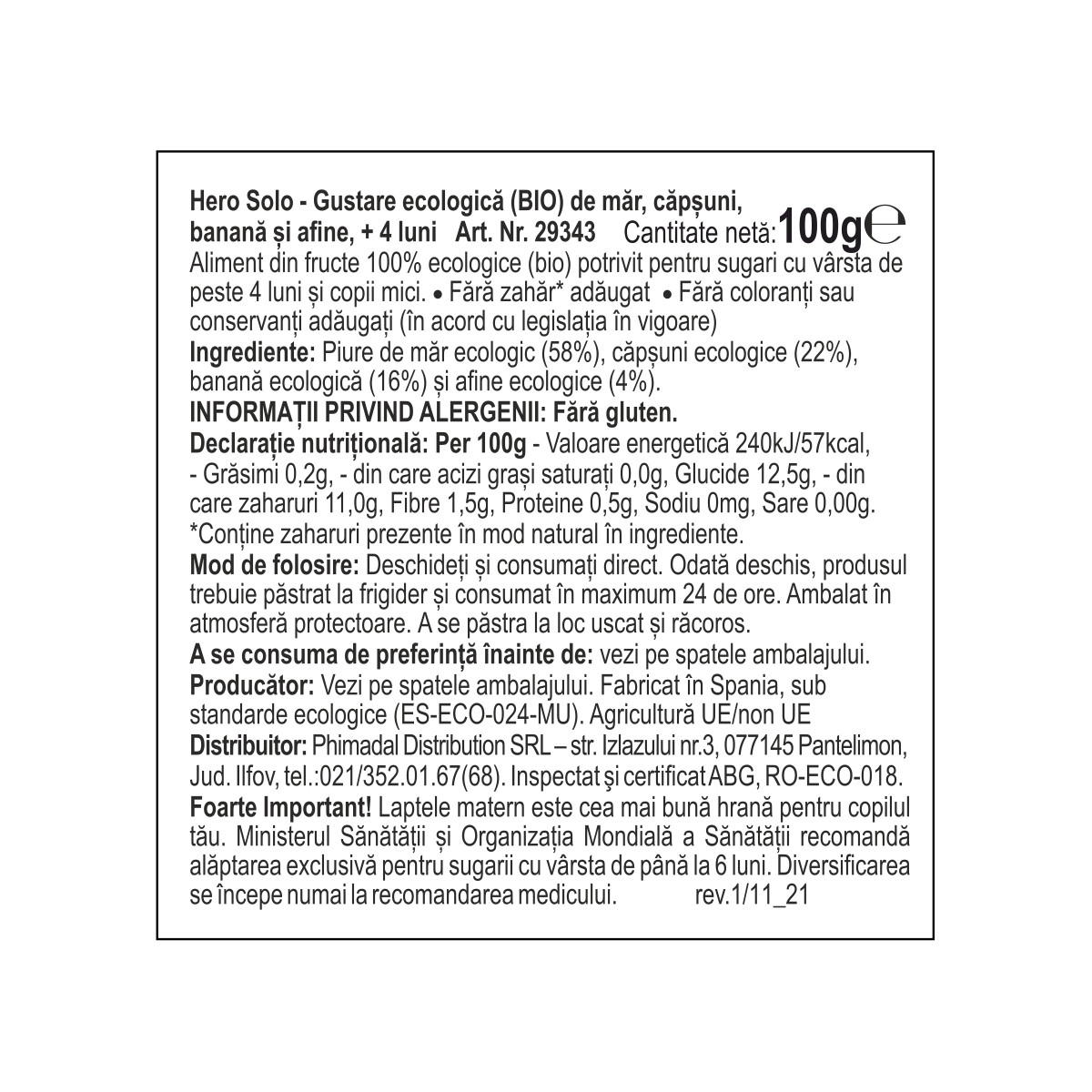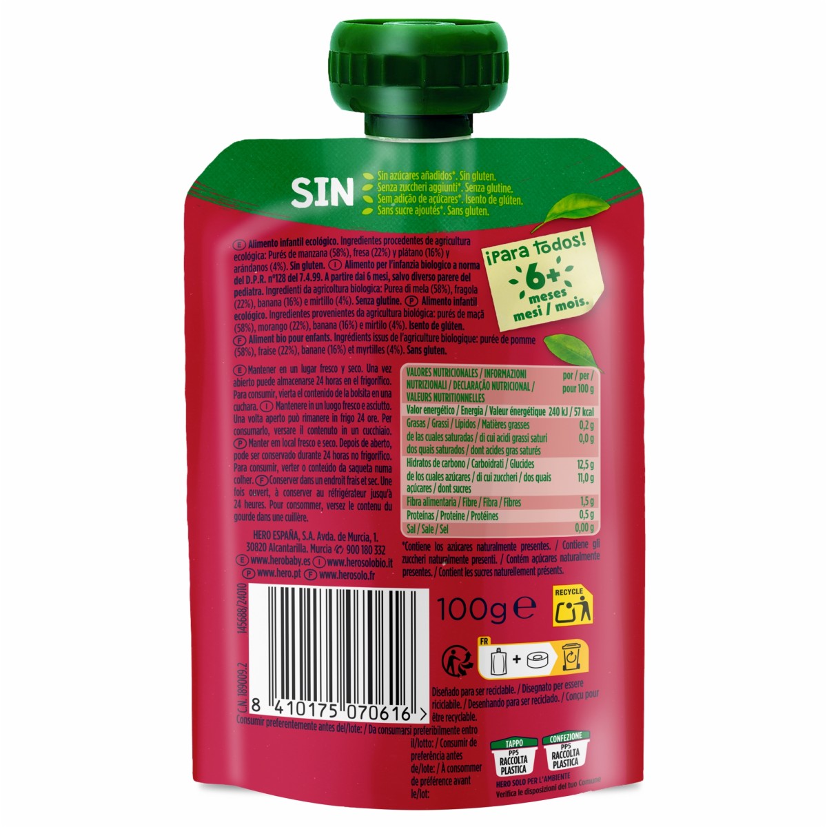 HERO SOLO BIO - Piure GUSTARE MAR, CAPSUNI, BANANA SI AFINE, ECO, 100G, 4luni+