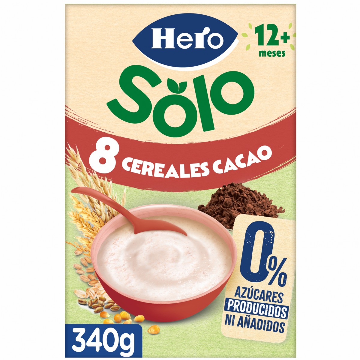 HERO - 8 CEREALE CU CACAO, 340G, 12luni+