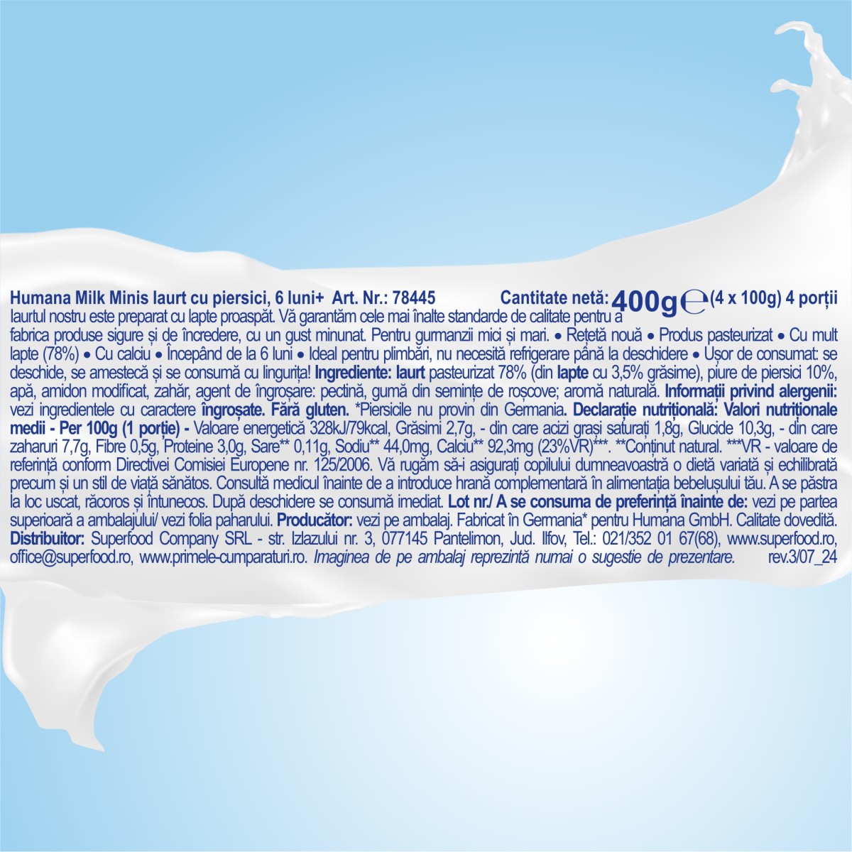 Foarte important! Laptele matern este cea mai bună hrană pentru copilul tău. Ministerul Sănătății și Organizația Mondială a Sănătății recomandă alăptarea exclusivă pentru sugarii cu vârsta de până la 6 luni. Diversificarea se face numai la sfatul si sub supravegherea medicului. Va rugam sa-i asigurati copilului dumneavoastra o alimentatie variata si echilibrata si un stil de viata sanatos!