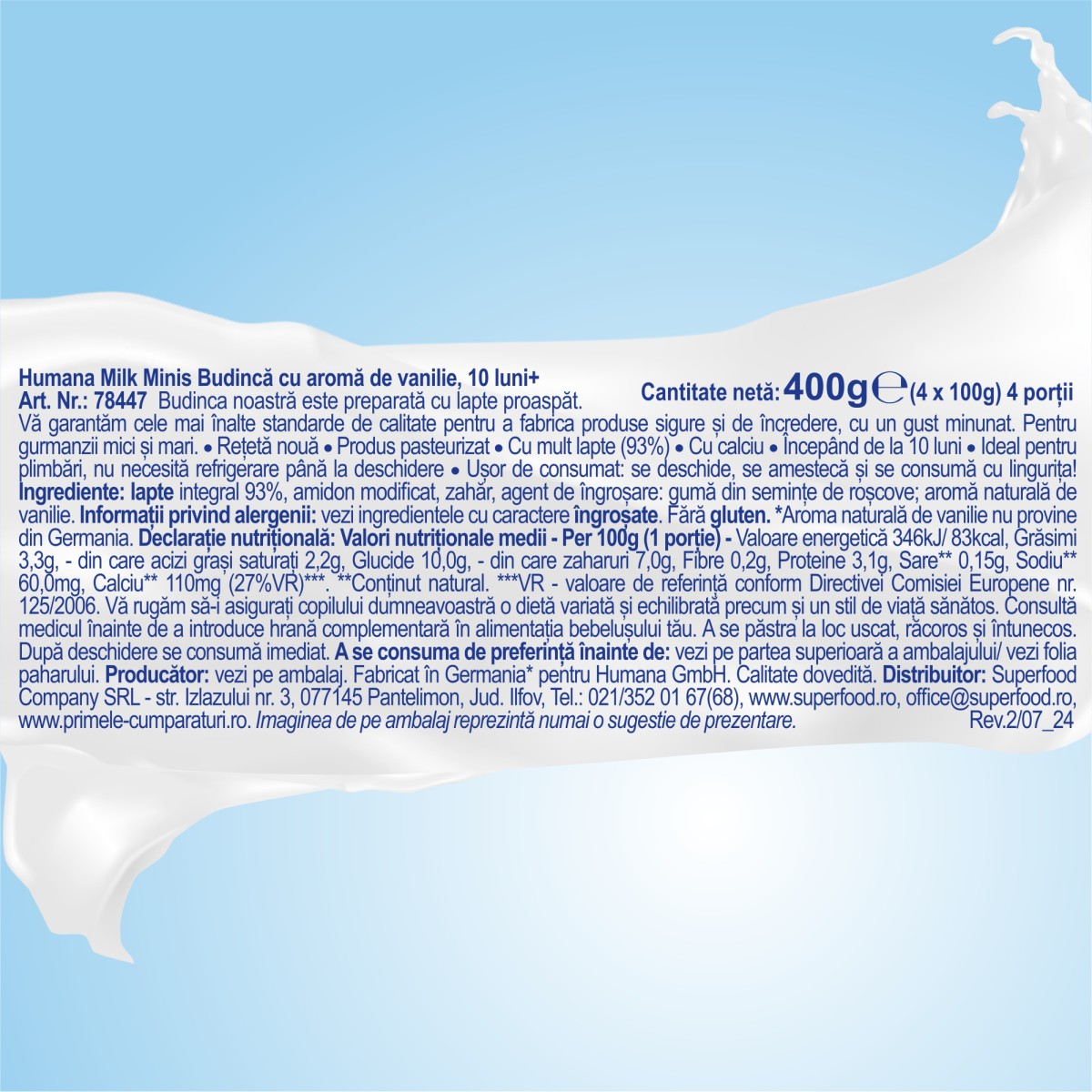 Pentru informatii complete precum lista de ingrediente, declaratie nutritionala, alergeni, conditii de depozitare etc. vezi imaginea cu eticheta in limba romana a produsului.
