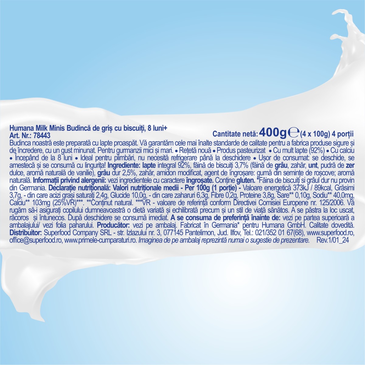Conținut net: 400ge (4 x 100g) 4 porții