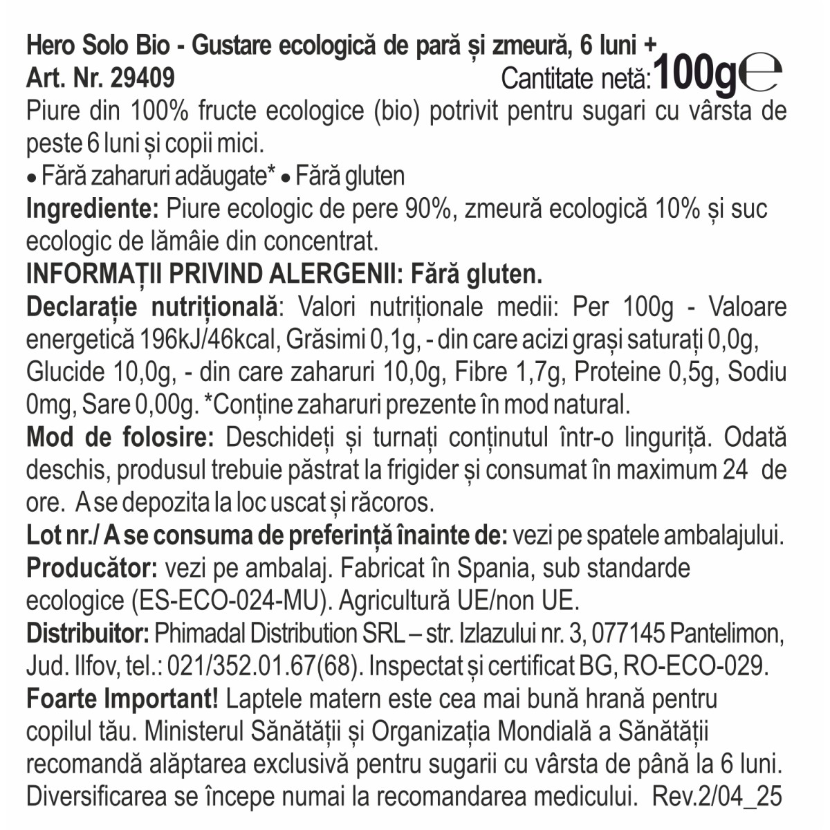 Foarte Important! Laptele matern este cea mai bună hrană pentru copilul tău. Ministerul Sănătății și Organizația Mondială a Sănătății recomandă alăptarea exclusivă pentru sugarii cu vârsta de până la 6 luni. Diversificarea se începe numai la recomandarea medicului.