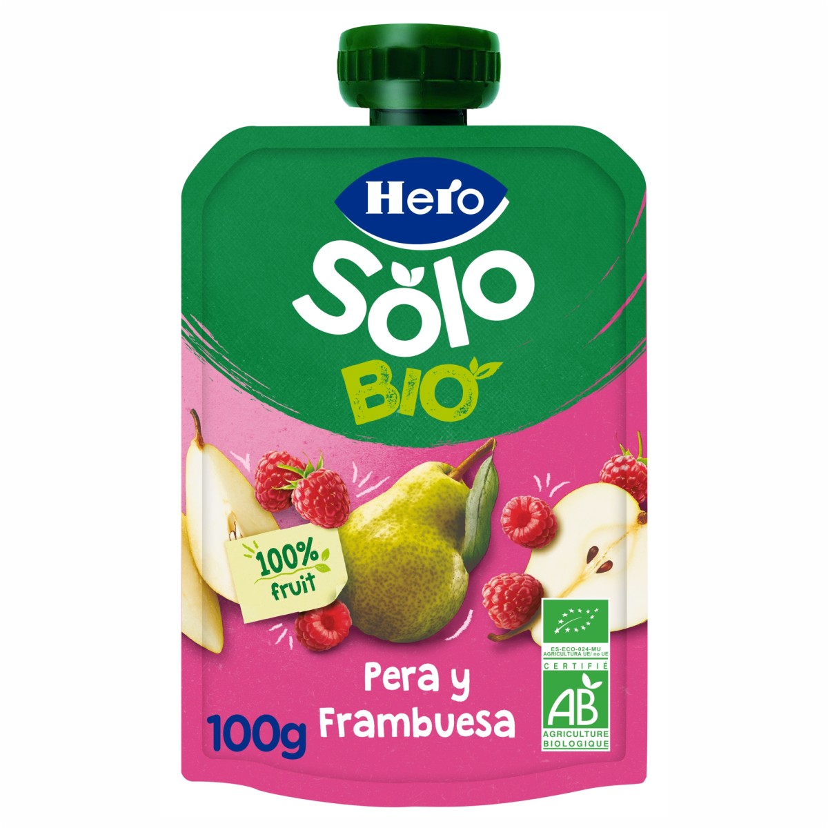HERO SOLO BIO - Piure gustare pară și zmeură, 6 luni+, 100g
