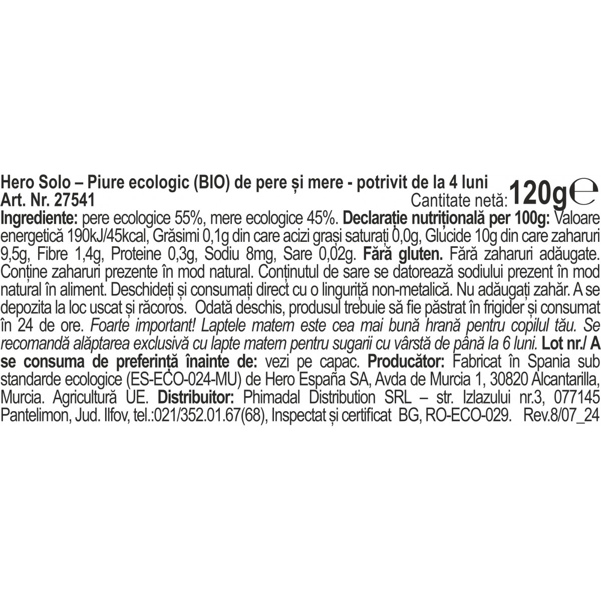 Hero Solo – Piure ecologic (BIO) de pere si mere - potrivit de la 4 luni