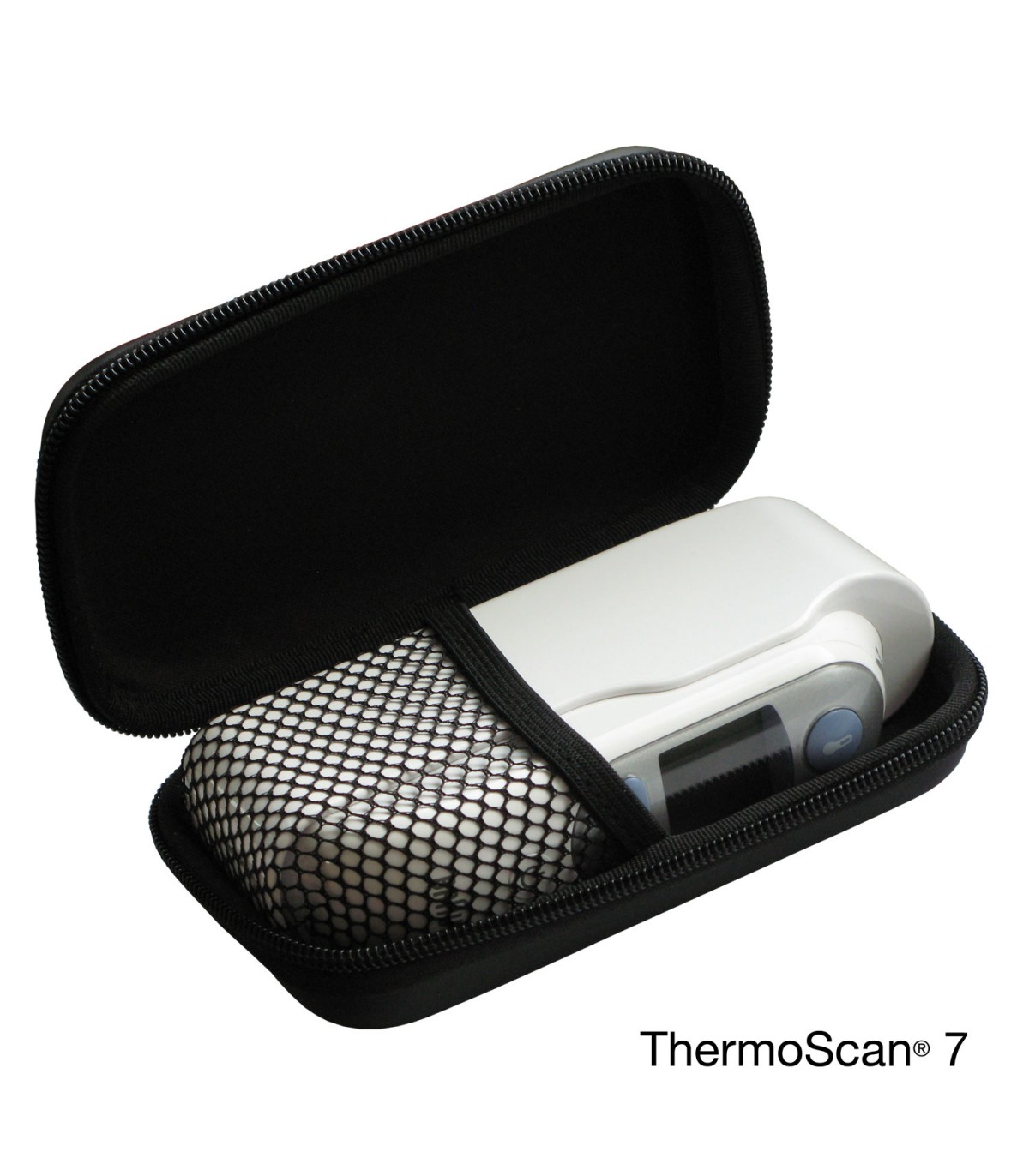 Pachetul contine un toc pentru depozitarea termometrului auricular.