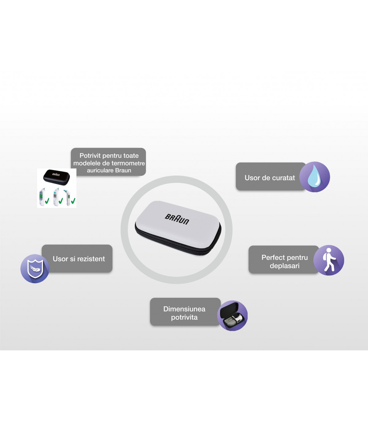 • potrivit pentru toate modelele de termometre auriculare si capace de protectie Braun